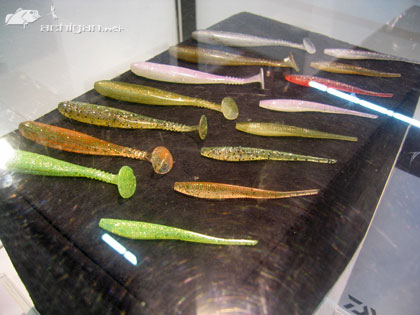 Là, le stand mettait en avant les leurres souples comme un Shad à caudale ou un leurre souple finesse.