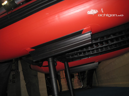 Armada), des rames nouvellement installées (en complément de la propulsion classique par palme), des dérives sous les boudins et une position encore surélevée en font un modèle plutôt destiné aux grande étendues (ou simplement au personnes pouvant facilement transporter un objet encombrant dans leur véhicule). On imagine qu'un tel monstre prend un minimum de place même une fois dégonflé. Ça ne devrait pas en prendre probablement autant qu'un Pontoon...