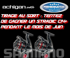 précédent jeu concours avec fishernator pendant ces 3 derniers mois a eu un franc succès... le site de vente de matériel de pêche fishernator a donc décidé de renouveler le jeu concours suivant la même formule qui a fait son succès : vous passez commande depuis le site achigan.net en achetant quoi que ce soit sur