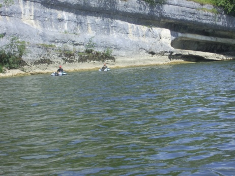 On fait le tour d'une île, on remonte le bras le plus petit. Le coin est magnifique, ombragé, beaucoup de nénuphares, des galets au fond et entre 50 et 1,2 m de fond.