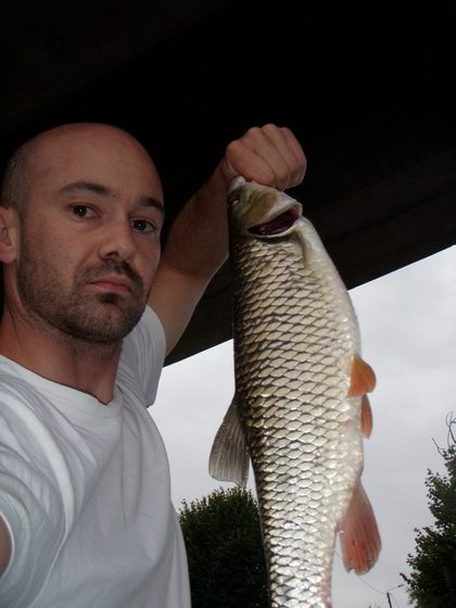 Aprés un rush, j'arrive à le remonter rapidement à la surface. Il s'agit d'un bec, un jolie de 80 environ et trés bien dodu.