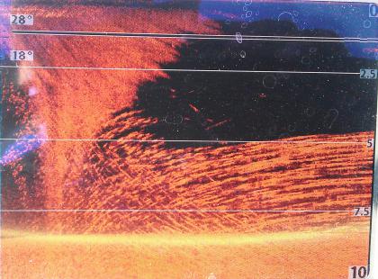 shads impact ! Des attaques en surface, puis par 8 mètres de fond sur un plateau. L'étang possédait un plateau qui passait de 15 mètres à 1,3 mètres en plein milieu !