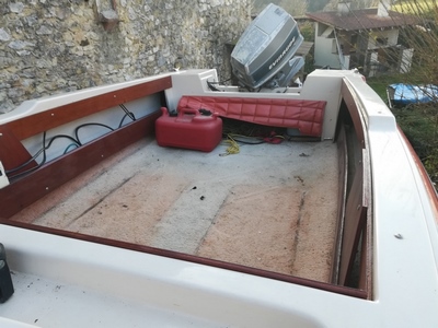 je change le moteur par un 30 cv barre franche pour faciliter la fabriquation du ponton
