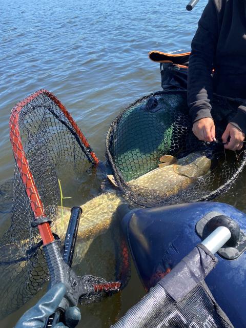 On s’est fait une frayeur avec l’épuisette percée de mon pote car le brochet a commencé à se faire la malle.