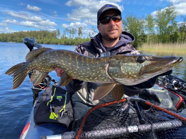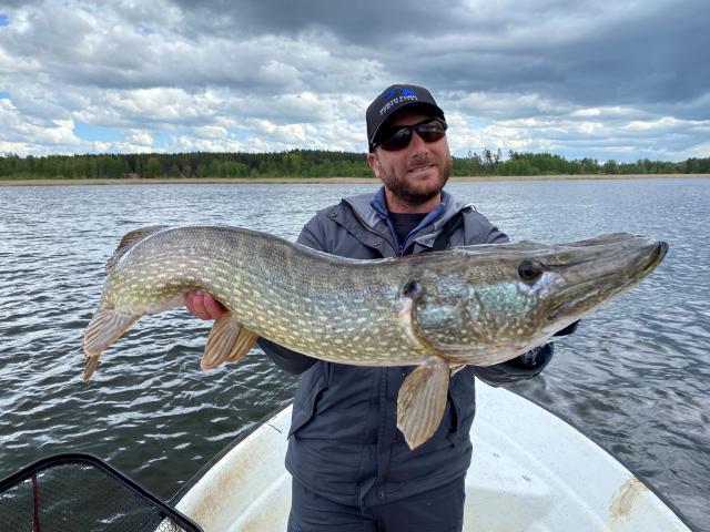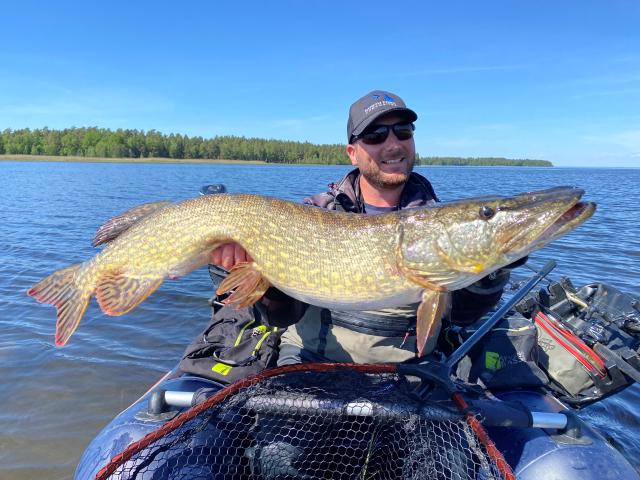 Premier voyage en Suède pour lui, il décide directement de s’attaquer aux grands brochets du lac Vänern.