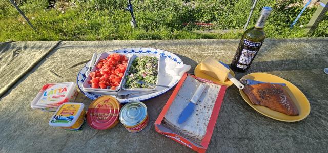 pattern, la météo était bonne et on a déjà un « graal ». Un bon gros apéro pr fêter ça, d’autant que le proprio nous a laissé un paquet d’ölkorv comme cadeau de bienvenue ! Si vous ne connaissez pas et que vous allez là-bas, ces petites saucisses séchées super épicées sont à goûter absolument !