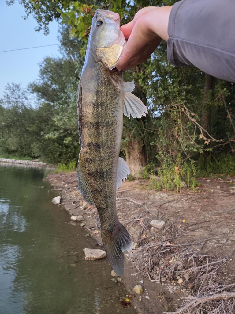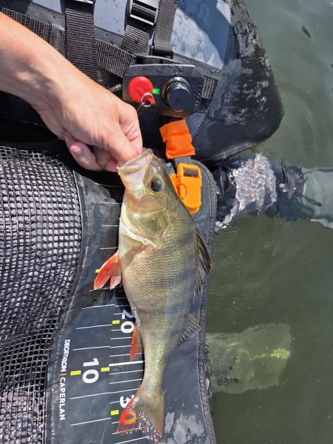 Las, un caillou aussi profond que profondément malveillant prive ma douce de son bas de ligne, et pendant qu’elle le remplace, je sors trois perches de leur milieu humide et malsain. Pas des monstres, hein des truc de 15 ou 18 cm. Christine se mêle de nouveau à la fête et, exceptionnellement, je crois être en tête des prises…