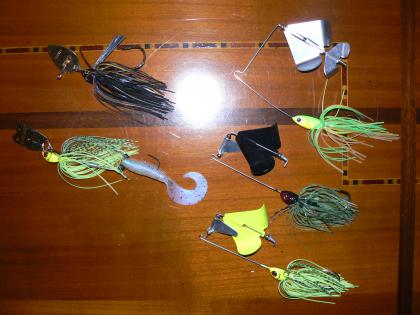Lot de 3 buzzbait + 2 chatterbait + leurre dur Konzo (photo en bas avec les autres leurres durs) pour