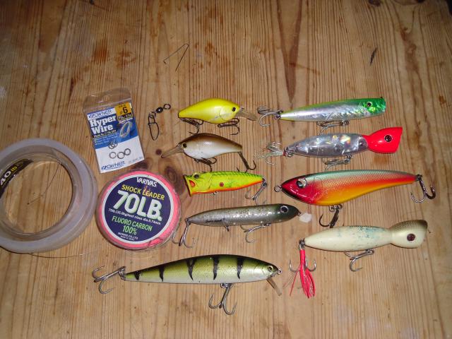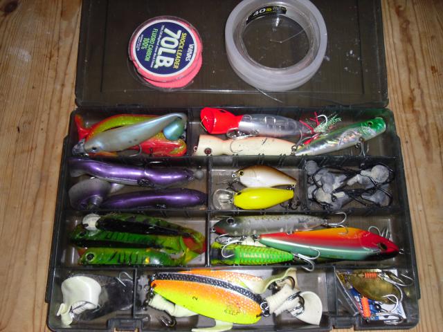 ensemble de leurre complet pour pecher le silure, leurre souple plus tete plombée, cuillerre tournante ,ondulante, gros popper, jerk, cranck . plus des restant de fluoro de gros diametre pour les tete de ligne. le tout avec la boite.