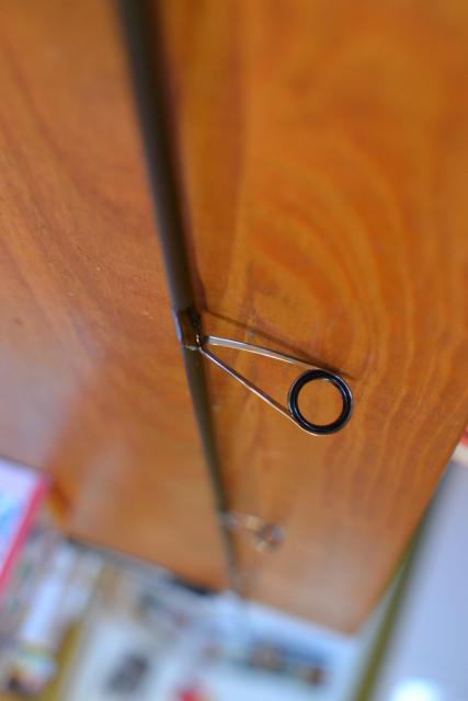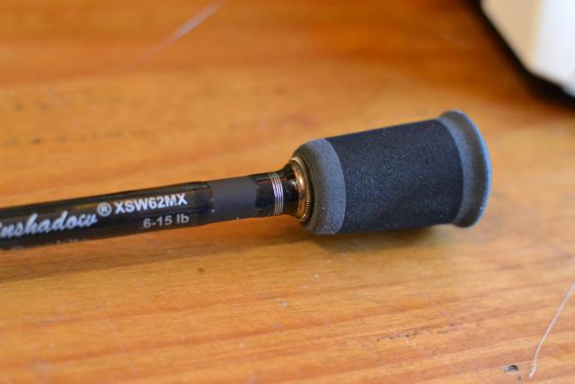 je me sépare à regret de le dernière canne que j'ai monté...il s'agit d'une canne courte, de 6'2" soit 187cm, réalisée autour d'un blank batson rainshadow 62MX, blank américain de renommé destiné pour la pêche du walley à la verticale. D'une puissane de 5/15g sous estimé, le blank encaisse 20g, et d'action X-fast en carbone haut module (53 M de psi), très sonore. J'ai poncé la peinture du blank pour mettre le carbone à nu, ce qui procure un touché très doux et maximise les sensations. Pour info la valeur de ce blank est de 105€!