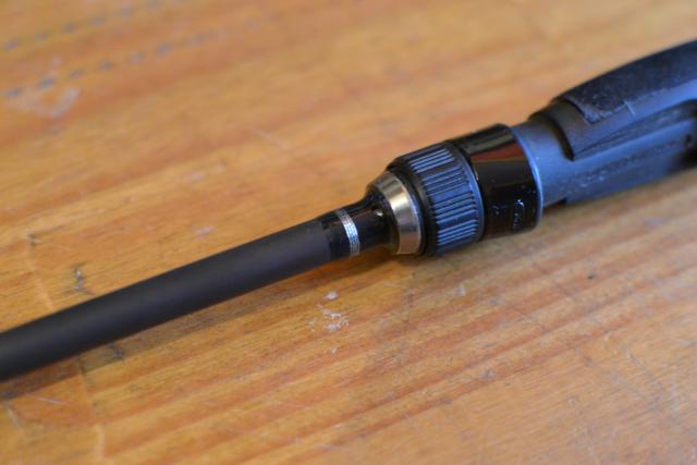 Le montage de la poignée est en eva haute densité avec un porte moulinet fuji ips très ergonomique monté en "no fore grip" ce qui signifie que les doigts reposent directement sur le blank devant le porte moulinet, ce qui présente plusieurs avantages; super équilibrage, maximum de sensations, un style épuré façon canne de l'espace.