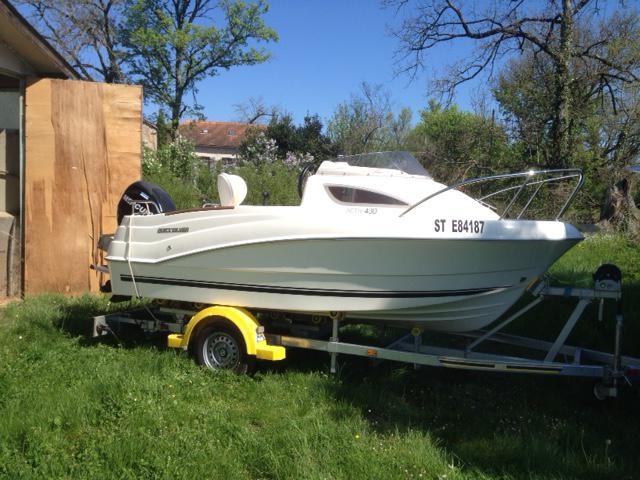 ETAT NEUF ,Quicksilver activ cabin 4.30 fin 2013, moteur 40 cv ,62 heures. Bateau et moteur comme neuf, servi 4 fois et seulement en eaux douces + remorque, hiverné chaque hiver par le vendeur et mis à l'abri ; valeur neuf 15000 euros.