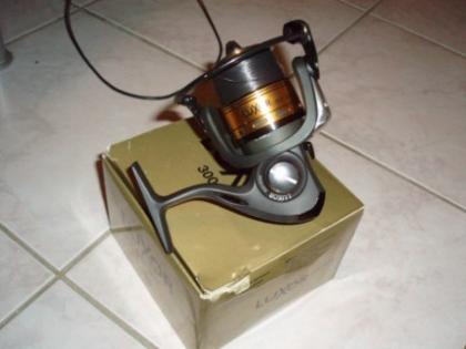 Moulinet Pezon&Michel luxor SW300, servie 1h + une autre bobine garnie de nylon berkley translucide 30/100 2 petite éraflure rien de bien méchant.