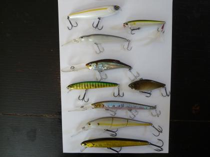 Je propose les leurres suivants, parfaits pour la recherche du broc (haut en bas) :