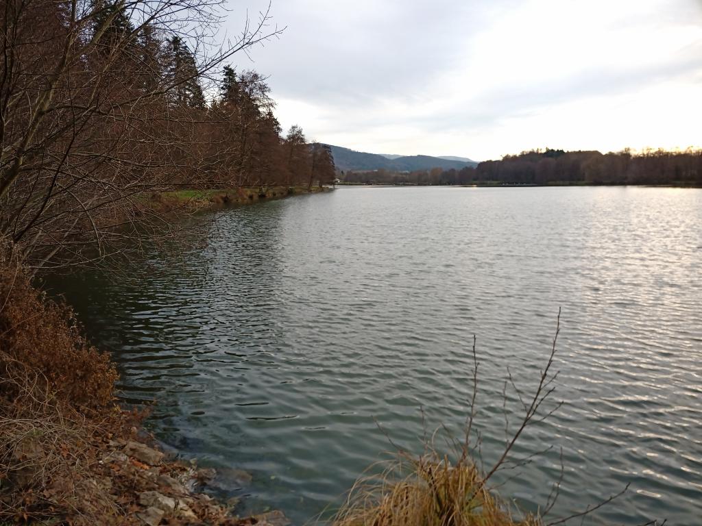De l’eau où vivent de multiples espèces de poissons. On peut voir les carpes monter à la surface juste devant le ponton.